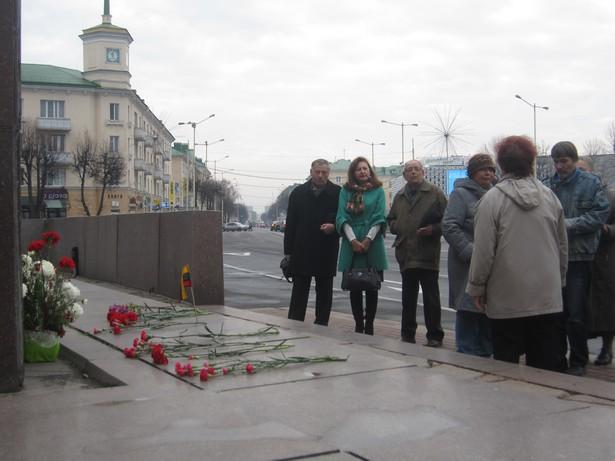 Барановичские коммунисты возложили цветы к памятнику Ленина. Фото: Ольга ШИРОКОСТУП