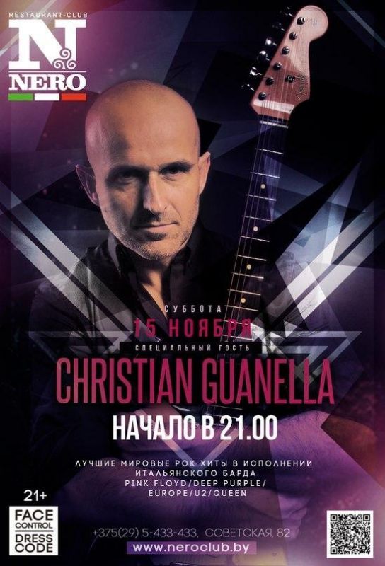 День памяти жертв ДТП В Барановичах пройдет акция, посвященная Дню памяти жертв ДТП. Автомобилисты города могут почтить память погибших в ДТП водителей и пассажиров минутой молчания, возложить цветы на местах их гибели, зажечь свечи на проспекте Советском. Где и когда: площадка у Ледового дворца, 16 ноября, в 17.00. НОЧНАЯ ЖИЗНЬ Вечер рок-хитов Концерт итальянского барда Кристиана Гуанелла пройдет в ближайшую субботу в Барановичах. Музыкант исполнит рок-хиты групп Pink Floyd, Deep Purple, Europe, U2 и Queen. Где и когда: ночной клуб Nero (ул. Советская, 82), 15 ноября, в 21.00. Ретровечеринка Провести вечер под музыку ушедших десятилетий можно в ночном клубе К2 в это воскресенье. Где и когда: ночной клуб K2 (ул. Фабричная, 3), 16 ноября, в 22.00. СПОРТ ВОЛЕЙБОЛ В выходные 15–16 ноября в рамках чемпионата страны пройдет матч между командами «Атлант» и «Гомельдрев-Надежда». Где и когда: СК "Атлант", 12 ноября, в 17.00; 15 ноября, в 18.00; 16 ноября, в 12.00. ВЫСТАВКИ