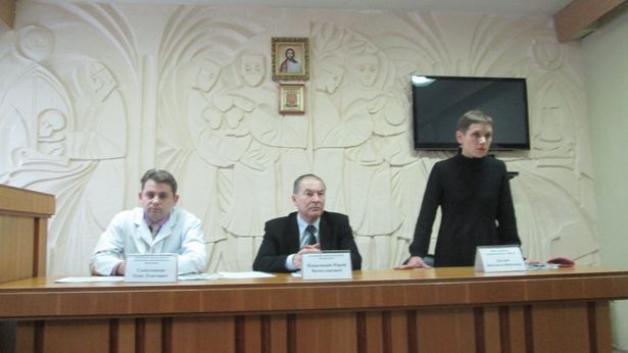 Участники конференции: зав. диспансерным отделением городского онкологического диспансера Олег Самусенков, зав. УЗ "Барановичский межрайонный наркологический диспансер" Юрий Навроцкий, врач-валеолог БЗЦГиЭ Людмила Кислая. Фото: Ольга ПРОСТАК