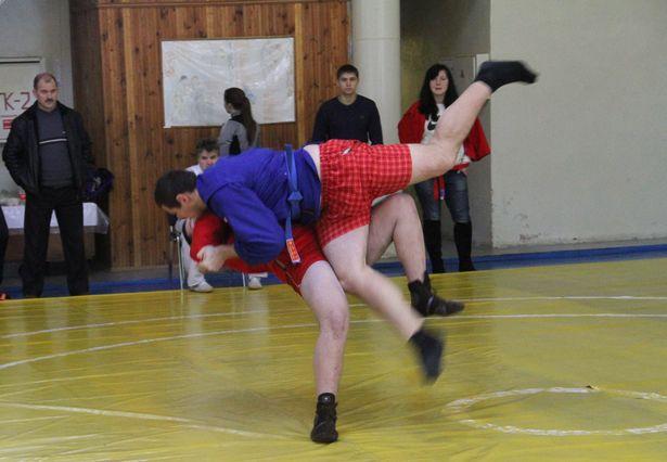 В схватке между барановичским спортсменом Вадимом Бернатом (в красной куртке) и самбистом из г. Ивацевичи Александром Макаром убедительную победу, проведя болевой прием, одержал наш самбист. Фото: Александр ТРИПУТЬКО
