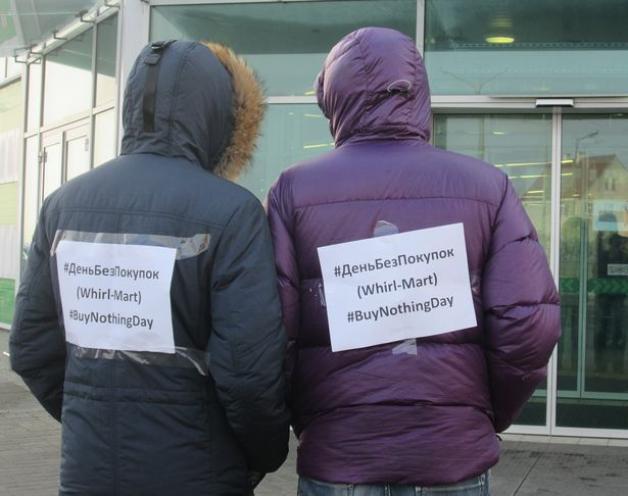 Не поддержали мероприятие и охранники супермаркета, запретившие молодым людям с надписями на спине «День без покупок» пройти в магазин. Принять участие в акции пришли только ее организаторы