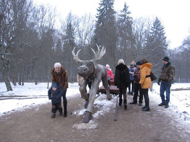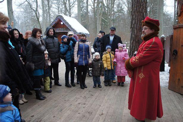 В сказочном поместье в Беловежской пуще можно потанцевать с дочкой Бабы Яги, помолодеть, посмотревшись в волшебное зеркало, перемолоть в волшебной мельнице свои плохие поступки и, главное, получить подарок от Дедушки Мороза. Дорога из г. Барановичи до Беловежской пущи, где расположена резиденция белорусского Деда Мороза, на машине занимает 2–3 часа. Проезд на собственном транспорте по пуще запрещен, поэтому машину придется оставить на стоянке на въезде, а дальше – воспользоваться услугами, которые предлагают в кассах. Экскурсия в поместье Дедушки – самая дорогая – 85 тысяч рублей (70 тысяч – для детей). Экскурсионные автобусы ходят три раза в день. Заехать на территорию Беловежской пущи можно только на экскурсионном транспорте. Фото: Ольга ШИРОКОСТУП До очередного рейса к Дедушке Морозу еще час, в кассе предлагают перекусить в местном кафе. Одноэтажный деревянный домик с милой стоянкой для велосипедов навевает мысли о Карпатских курортах, но, зайдя внутрь, оказываешься в обычной столовой, где за барной стойкой стоит женщина в зеленом фартуке с белыми рюшками. Цены по сравнению с барановичскими кафе довольно-таки приятные. Можно заказать винегрет всего за 10 тысяч, полакомиться белорусскими драниками за 40 тысяч. Самое дорогое горячее – лисички с луком и шкварками – 61 750. На входе в пущу можно выбрать сувенир – от магнита за 25 тысяч до поделки из соломки за 390 тысяч. На входе в Беловежскую пущу можно купить сувениры. Фото: Ольга ШИРОКОСТУП Указатель к резиденции Дедушки Мороза. Фото: Ольга ШИРОКОСТУП Билеты нужно сохранять до конца экскурсии. Фото: Ольга ШИРОКОСТУП В указанное время к Дедушке едет сразу несколько автобусов, все места заняты. Дорога к поместью по лесной дороге занимает около 15 минут. Каждый автобус – определенная группа, которую встречают помощники Деда Мороза. Они проводят гостей в усадьбу, вспоминают со всеми «В лесу родилась елочка» и рассказывают вкратце историю поместья. Вход в резиденцию Деда Мороза. Фото: Ольга ШИРОКОСТУПФото: Ольга ШИРОКОСТУП Возле входа страж проверяет билеты и открывает волшебные ворота. Еще один сказочный герой – Янка – проводит всех в резиденцию. Здесь стенд в виде резного деревянного зубра, на котором фигурки сказочных персонажей – друзей нашего Дедушки. А на алее, которая идет от зубра, – деревянные статуи этих персонажей во весь рост. Янка рассказывает истории про предка всех дедов Морозов – Зюзю Поозерского, русского и казачьего Дедушек, Емелю, Болотника и Бабу Ягу. Помощница Деда Мороза, сказочный персонаж Янка и страж встречают гостей у ворот в резиденцию Дедушки Мороза. Фото: Ольга ШИРОКОСТУПЭкскурсию по поместью Дедушки начинает сказочный персонаж Янка. Фото: Ольга ШИРОКОСТУП Символ Беловежской пущи – зубр. Фото: Ольга ШИРОКОСТУП