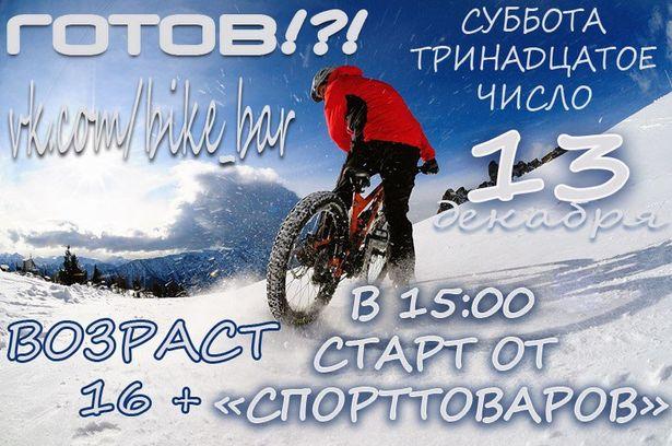 СПОРТ Велопробег Горячие приверженцы велосипедного движения в эту субботу смогут прокатиться по городу в компании единомышленников по маршруту длиной в 12 км. Организаторы призывают к участию велосипедистов старше 16 лет и уверяют, что пробег закончится к открытию елки. Среди обязательных требований – наличие велосипеда, приспособленного для езды по бездорожью, и одежда, соответствующая погоде. Где и когда: сбор у магазина «Спорттовары» (ул. Ленина, 53), 13 декабря, суббота, 15.00. Хоккей В Ледовом дворце барановичская хоккейная команда «Сталкер» встретится с «Пружанскими китами». Игра Западной любительской хоккейной лиги состоится 13 декабря. Где и когда: Ледовый дворец (пр-т Советский, 20), 13 декабря, 13.00.