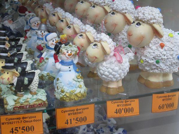 Торговые центры и магазины города заполнили витрины всевозможными символами наступающего года. Гламурные овцы ручной работы удивляют своим разнообразием: от маленьких мягких игрушек-магнитов за 56 тысяч рублей до больших пушистых символов Нового года за 420 тысяч. Статуэтка овцы с золотистым опылением и шариковой ручкой в комплекте обойдется в 289 тысяч. Не остались без внимания и маленькие жители нашего города. Рюкзак-овца стоимостью 130–180 тысяч придется по вкусу самым практичным детишкам, а кто-то выберет и «тапочки-овечки» за 114–146 тысяч. Детская качалка в виде овцы обойдется в 624 тысячи. В преддверии Нового года расширился и ассортимент мягких игрушек. Здесь и самая грустная овечка за 146 тысяч, и смешные фиолетово-зеленые символы года за 90 тысяч. Оптимальный вариант для подарка без ущерба кошельку – магнит или брелок за 5–20 тысяч.