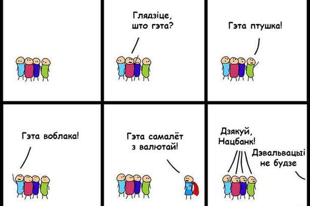 «Самалёты з валютай ужо на падлёце», — абнадзеіў сёння Нацбанк. Вось як гэта магло б выглядаць — у форме вядомых коміксаў Cyanide and Happiness пра Капітана Відавочнасць. (Наша Ніва)