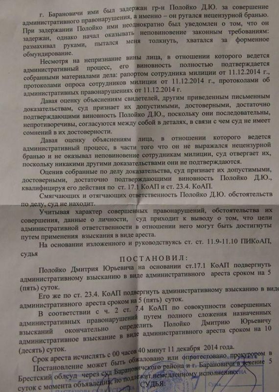 Хотите узнать больше? По повестке его пригласили явиться на заседание в Барановичи 14 января.