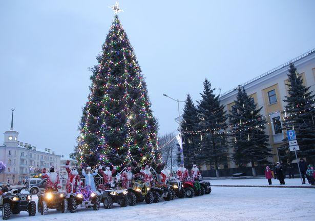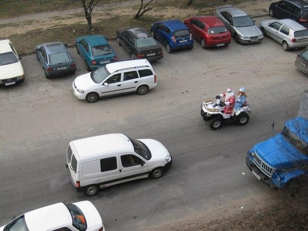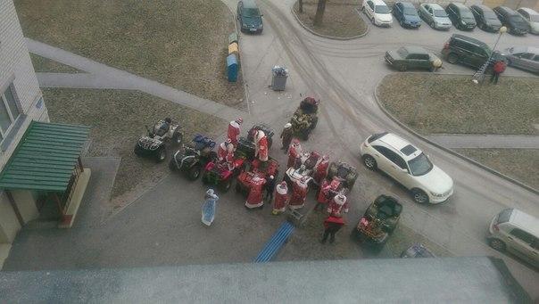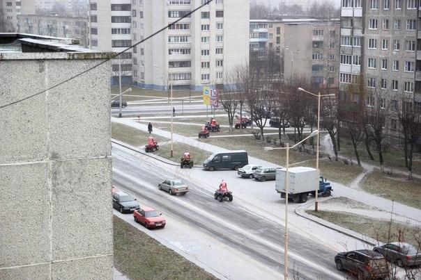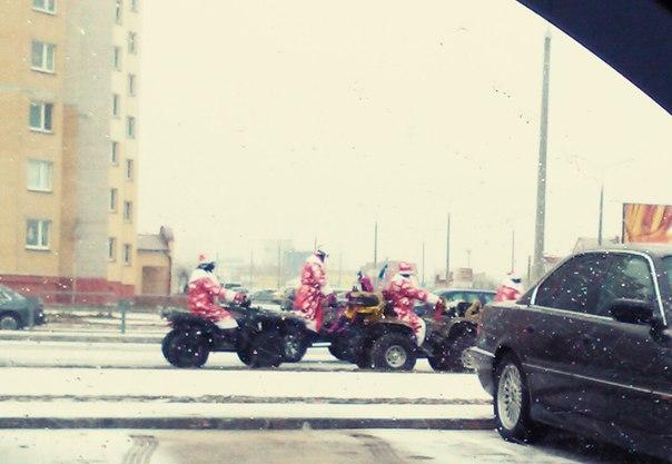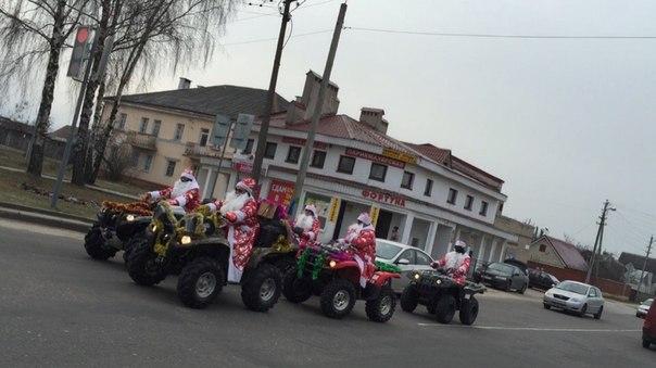 Фотофакт: Деды Морозы на квадроциклах катаются по Барановичам