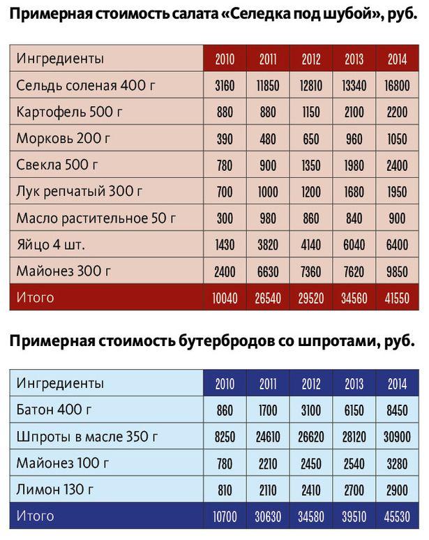 «Утеплитель» из овощей и яиц хоть подорожал, но не так значительно, хотя год назад именно он был рекордсменом: в 2013 году по сравнению с 2012 годом овощи подорожали на 40–80%, яйца – на 15%. В декабре прошедшего 2014 года стремительно росли цены на свеклу, которая стала дороже на 20%, и на лук, он прибавил 16% в цене. Остальные ингредиенты салата подорожали в среднем на 5–9%. Хлеб всему голова