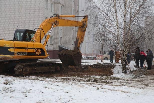 Из-за прорыва канализационной трубы в ночь на 22 января между домами 12В и 12Е по ул. 50 лет ВЛКСМ провалился грунт и образовалась большая яма. На месте аварии ведутся работы. На 12 часов дня работники барановичского «Водоканала» еще не добрались до поврежденной трубы. Воронку уже разрыли примерно до 4 метров в глубину. Ширина ее составляет около 10 метров. По словам главного инженера КУПП «Водоканал» г. Барановичи Дмитрия Тихно, поврежденная труба имеет диаметр 1 метр. Специальный транспорт «Водоканала» и МЧС перекачивает стоки из других колодцев. На месте аварии работают специалисты «Водоканала», МЧС и других оперативных служб. В ближайших домах воду и отопление не отключали. Между домами 12В и 12Е по ул. 50 лет ВЛКСМ расположен сборный коллектор, который собирает канализационные стоки от потребителей Северного и Текстильного микрорайонов. На месте аварии работает транспорт Водоканала и МЧС. Фото: Дмитрий МАКАРЕВИЧ. Экскаватор расширяет воронку. Фото: Дмитрий МАКАРЕВИЧ. До трубы пока не добрались. Фото: Дмитрий МАКАРЕВИЧ.
