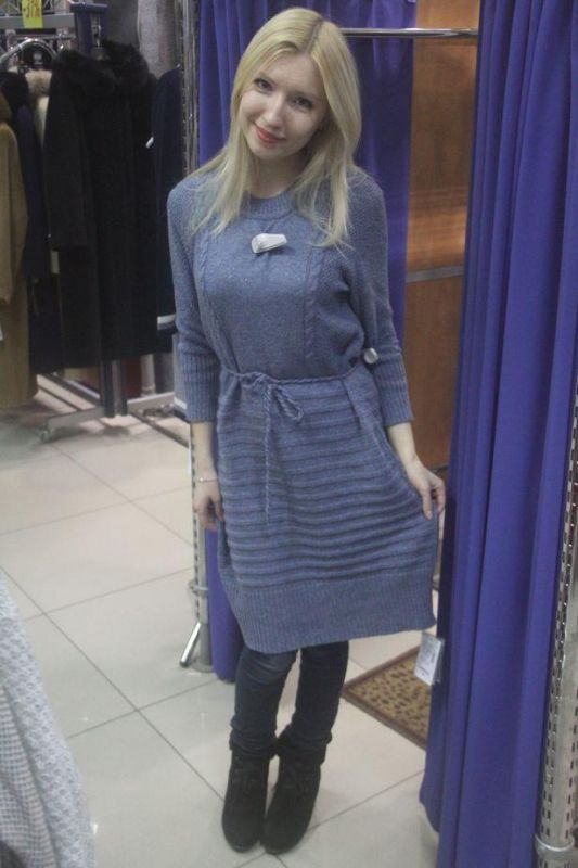 Теплые вещи женского гардероба белорусского производителя я нашла и в другом торговом центре. Выбор моделей там был разнообразнее, цены на одежду невысокие. Даже без скидок можно было купить кофту или платье за 90 тысяч рублей, а со скидкой цена и вовсе была «смешная» – чуть более 60 тысяч рублей. Возможно, и белорусский производитель умеет радовать клиента, просто некоторым городским магазинам нужно ориентироваться на покупателей разных возрастов и все же учитывать платежеспособность большинства горожан. Основные цвета платьев и кофт белорусских производителей: синий, коричневый, горчичный и малиновый. Мужчинам повезло