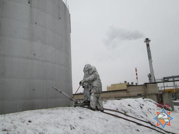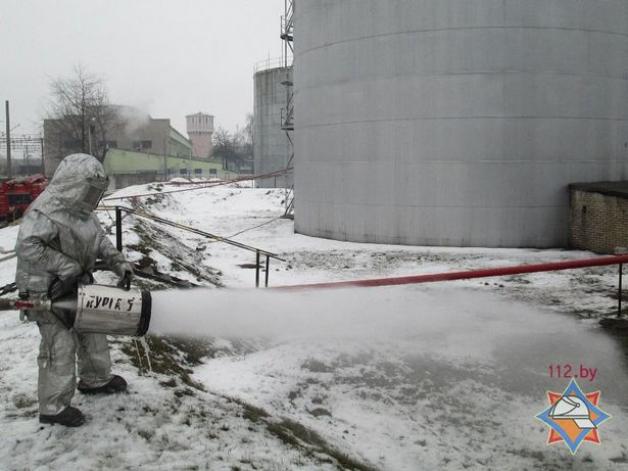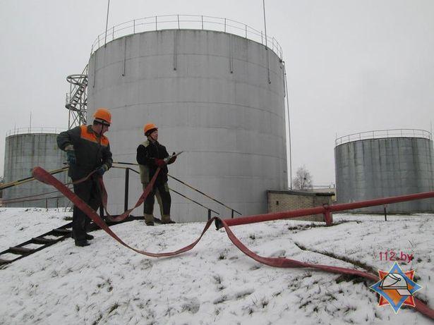 Тренировочные тактико-специальные учения прошли 13 февраля в резервуарном парке хранения топлива транспортного РУП «Барановичское отделение БЖД» Локомотивное депо. – По тактическому замыслу учений, на территории резервуарного парка хранения топлива локомотивного депо в результате нарушения мер ТБ и ПБ при проведении регламентных работ произошло загорание дизельного топлива в резервуаре №5 объемом 2000 кубометров, – рассказал Intex-press старший инспектор группы пропаганды и обучения Барановичского ГРОЧС Михаил Матяс. – В результате взрыва паровоздушной смеси в резервуаре произошел срыв крыши сосуда, с последующим горением на всей поверхности зеркала горючей жидкости.