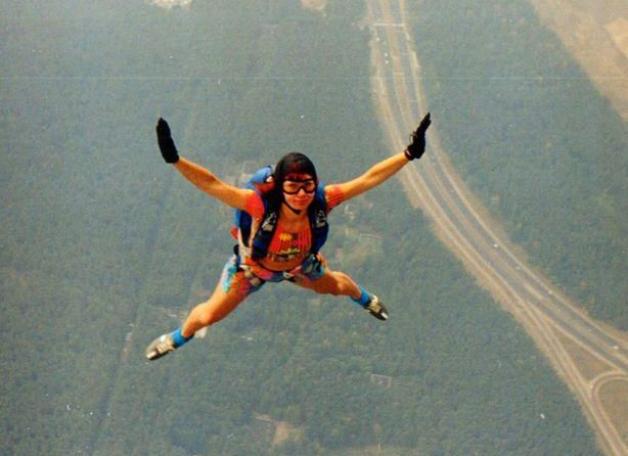Барановичская парашютистка Екатерина Сокольчик совершает прыжок. 1999 год. Фото: Из личного архива