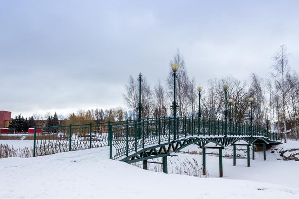 По этому мосту в Северном микрорайоне можно выйти к заводу автоматических линий или к зданию инженерного факультета БарГУ. Фото: Юрий ПИВОВАРЧИК