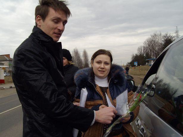Девушки-водители, которых останавливали организаторы акции в Малой Колпенице, не скрывали радости от особого внимания сотрудников ГАИ в праздничный день.