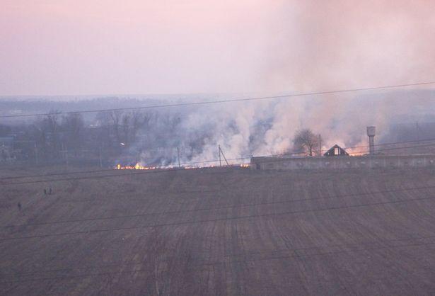 Выжигание сухой травы 10 марта рядом с проспектом Советским. Фото: Илья Щерба, группа ВКонтакте Подслушано Барановичи