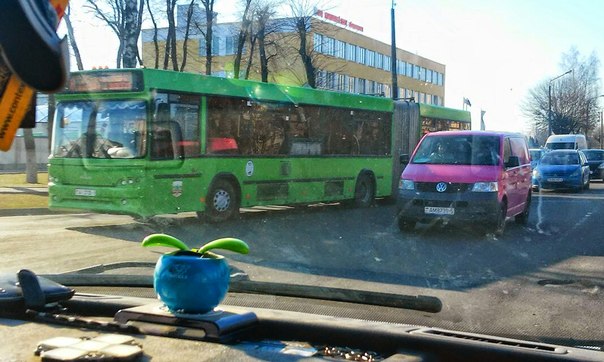 Подслушано Барановичи Вот такое "розовое настроение" посетило весенние дороги города Барановичи. Впервые в жизни я увидела такие брутальные авто, как фура и бус, в таких нежных тонах:)
