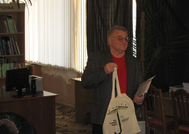 Сталічны паэт Мікола Трафімчук прывёз падарункі. Фота: Аляксей БЕЛЫ