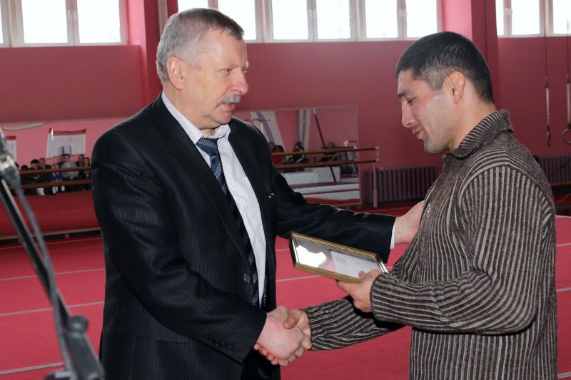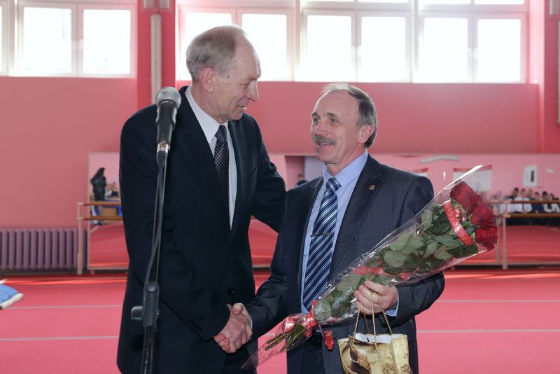 Поздравления принимает директор Дома физкультуры Анатолий Хвойницкий (справа)