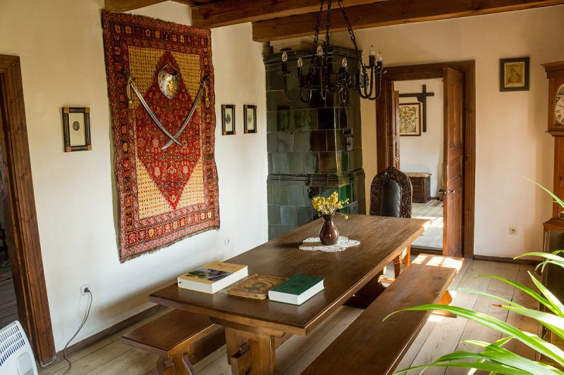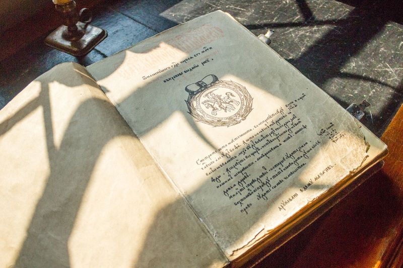 Экспозиция в музее начинается с документального зала. Здесь же находятся археологические материалы, найденные на раскопках Заосья. А изначально эта комната предназначалась для прислуги.