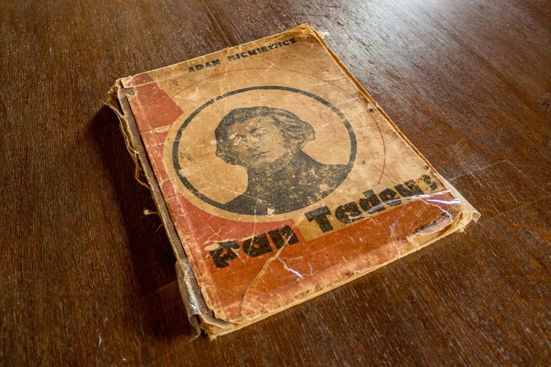 На столе лежат несколько книг, среди которых – поэма «Пан Тадеуш».