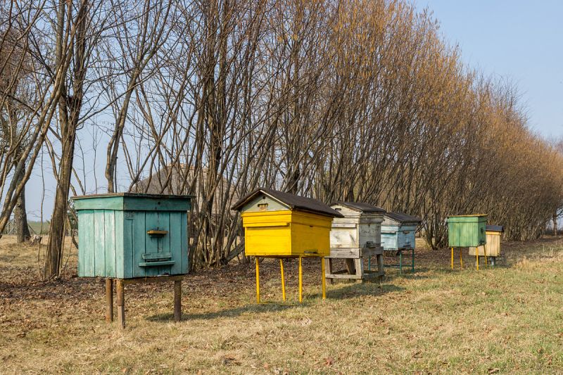 Если обойти пруд вокруг и вернуться другой дорогой, можно увидеть разноцветные ульи.