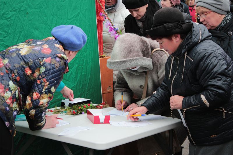 Перед храмом верующие могли купить свечи и написать поминальные записки. Фото: Юрий ПИВОВАРЧИК