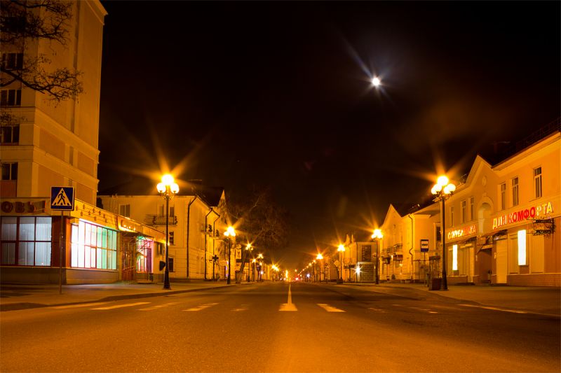 Ночные Барановичи. Фото: Юрий ПИВОВАРЧИК
