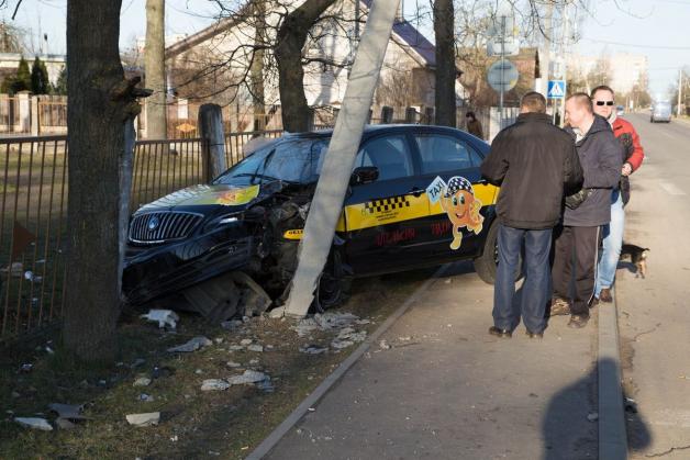 В Барановичах автомобиль такси врезался в столб