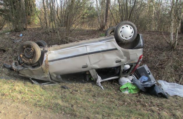 Женщина-водитель не справилась с управлением, и машина вылетела в кювет. Фото: предоставлено Ляховичской ГАИ