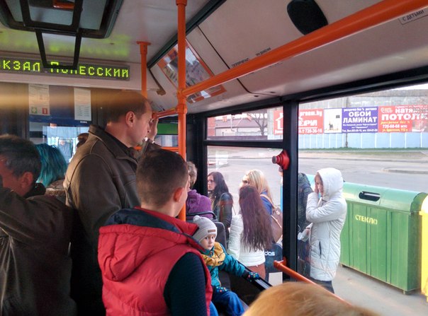 Если Вы подумали, что люди просто заходят в автобус, то Вы ошибаетесь. Люди стоят в очереди за покупкой талонов у водителя и весь автобус ждёт их.