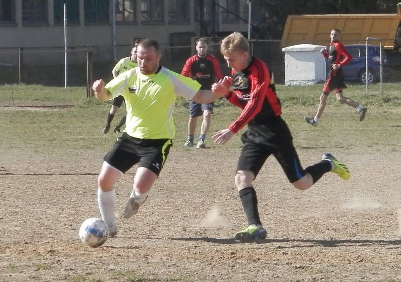 Юрий Шумский из «Восхода» закрывает мяч корпусом от Виталия Калейчика. фото Сергея ЖИВУЛЫ