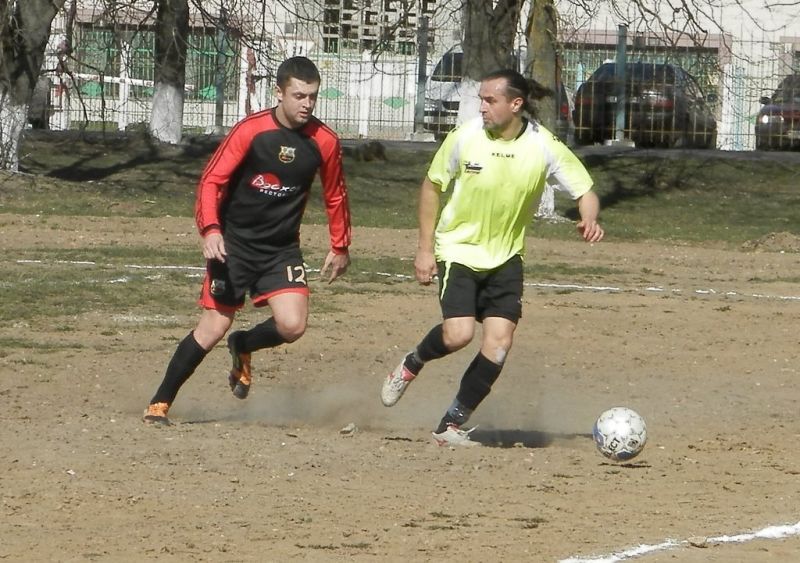 Дмитрий Чемерис (справа) первым успевает к мячу. фото Сергея ЖИВУЛЫ