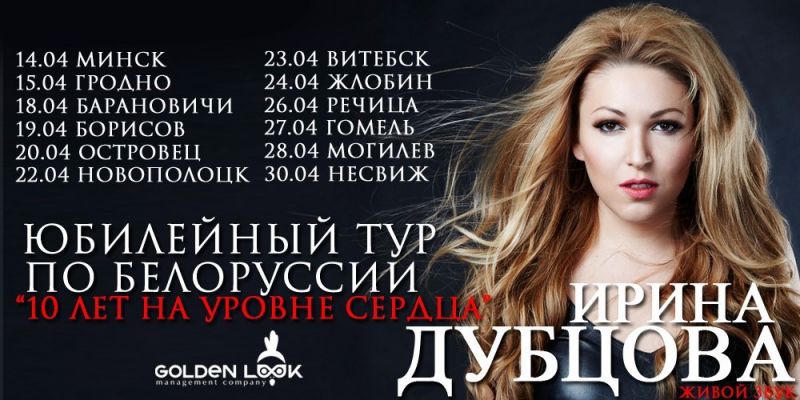 Дубцова, 18 апреля Ирина Дубцова – российская певица, поэт и композитор, выпускница и победительница «Фабрики звезд-4». В новой концертной программе еще больше песен, песни Дубцовой – это своеобразный крик души, пропитанный чувствами. В ее песнях зритель найдет любовь и страсть, грусть и разлуку, боль и предательство. Где и когда: Городской Дом культуры (ул. Ленина, 4А), 18 апреля, в 17.00 Выставка кукол «Госпожа кукла» Выставка авторских работ кукольных мастеров Беларуси. Где и когда: Крошинский СДК, 17 апреля, 18.00