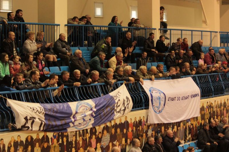 Игра за выход в полуфинал чемпионата Беларуси по волейболу между барановичским «Атлантом» и могилевским «Коммунальником». Фото: Юрий ПИВОВАРЧИК