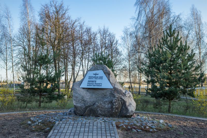 Мемориальный камень в честь первого Героя Беларуси летчика Владимира Николаевича Карвата в Авиагородке. Фото: Юрий ПИВОВАРЧИК
