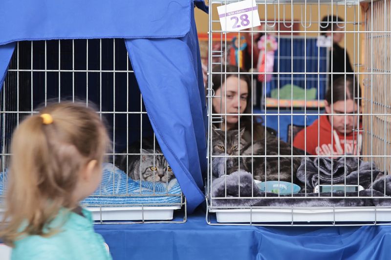 Выставка "Парад чемпионов" прошла в Ледовом дворце 26 апреля. На выставке можно было увидеть около сотни различных представителей рода кошек: от безволосых сфинксов до десятикилограммовых мейн-кунов.