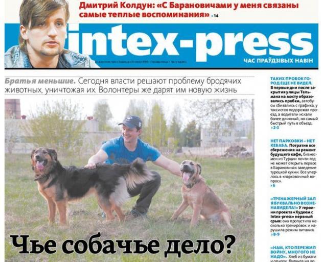 Сегодня власти решают проблему бродячих животных, уничтожая их. Волонтеры же дарят им новую жизнь. Читайте также в новом выпуске газеты: – Потратив все сбережения на ремонт будущего кафе, бизнесмен из Турции почти год не может открыть первое в Барановичах заведение турецкой кухни. Все уперлось в «парковочный вопрос». Нет парковки – нет кебаба. – У героини проекта «Худеем с Intеx-press» нервный срыв: она пропустила тренировку и нарушила режим питания. «Тренажерный зал я буквально возненавидела!» – Хлеб из бумаги и опилок, баланда на лебеде и крапиве, смерть голодной сестрички. Блокадница Людмила Николаевна Бондарик вспоминает военное детство. «Нам, кто пережил войну, много не надо». – За два года отработки молодые специалисты БарГУ не пожалели о выбранной специальности, но некоторые из них готовы уйти с первого места работы в поисках более высоких заработков. «В Барановичах работы хорошей нет, а идти куда-то за 2-3 миллиона не хочется». – В первые дни после закрытия улицы Тельмана на мосту образовались пробки, автобусы сбились с графика, у таксистов подорожал проезд, а водители искали более длинный, но самый быстрый путь в объезд. Таких пробок город еще не видел.
