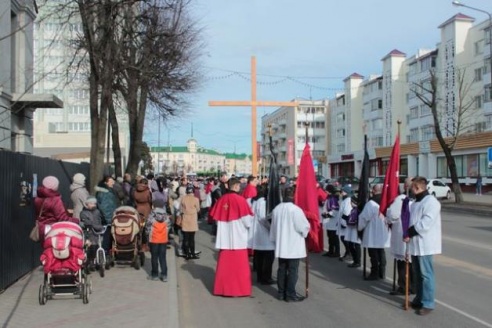 Хотите узнать больше? Сотні вернікаў прынялі ўдзел у Крыжовым шляху 22 сакавіка ў Баранавічах. Фота: Юрый ПІВАВАРЧЫК Напярэдадні Вербніцы, 22 сакавіка, каталікі горада