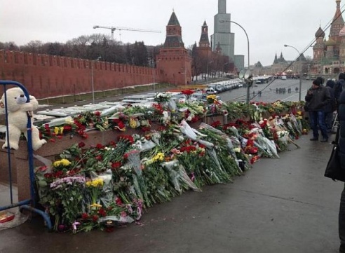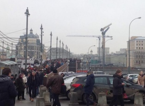 Читатель Intex-press с места убийства Бориса Немцова: «Народа очень много. На мосту все урны забиты обертками от цветов»