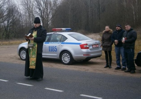 Барановичская ГАИ освятила аварийный участок дороги Барановичи-Молчадь-Дятлово