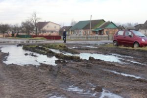 В числе многих себе подобных, простой труженик ганцевичской почты, инвалид 3 группы Николай Демидок ежедневно, чертыхаясь и поминая недобрым словом небесную канцелярию, преодолевает грязевой рубеж. Но в какой-то, видимо, не очень благоприятный день ноги сами принесли его в редакцию. Наболело, говорит, накипело! Большегрузные автомобили все глубже раскатывают колею, разбрасывая грязь во все стороны. Скоро даже по узенькому “перешейку” между лужами не пройдем. И вот что обидно — никто из начальства сюда глаз не кажет! Как будто и нет непотребства, к которому сами руку приложили.