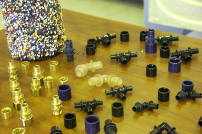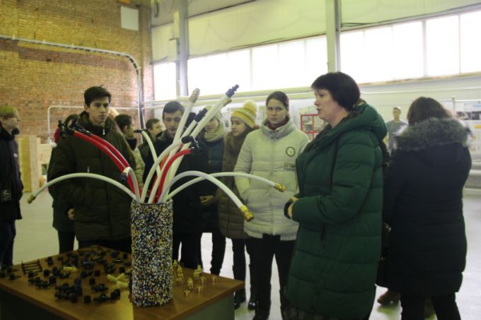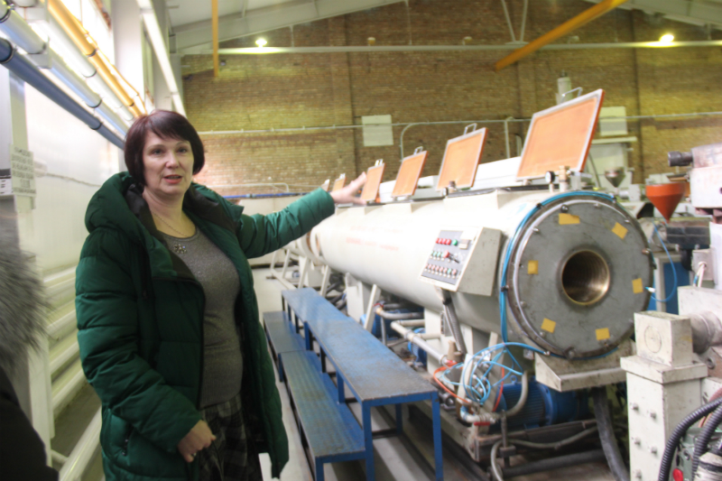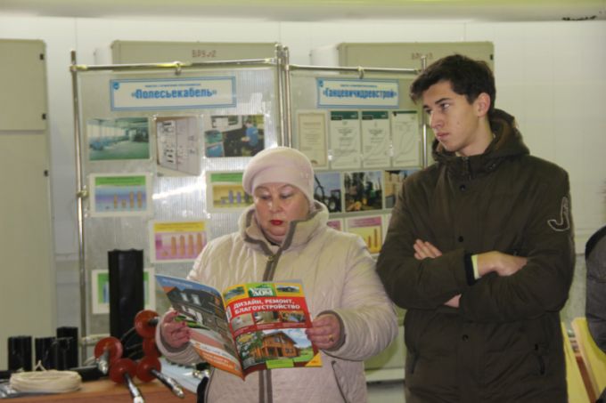 Посетители смогли увидеть продукцию частных предприятий Ганцевичского района. Экскурсию по выставке и цеху проводили лаборант физико-механических испытаний Татьяна Мышковец и заместитель председателя райисполкома Артур Григорян.