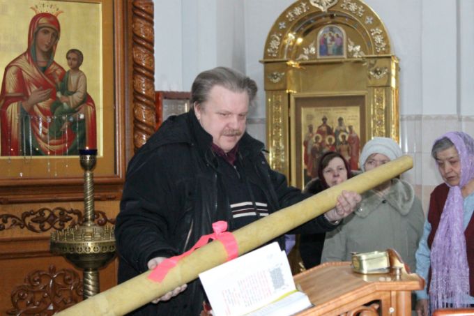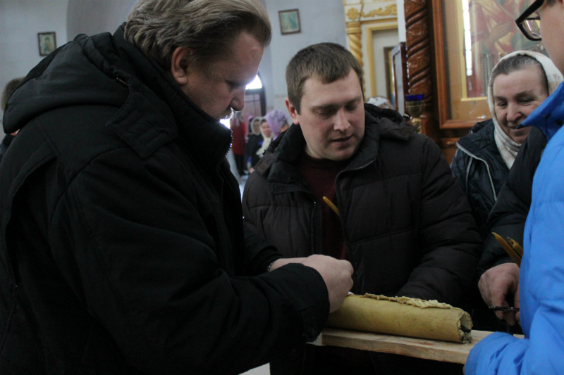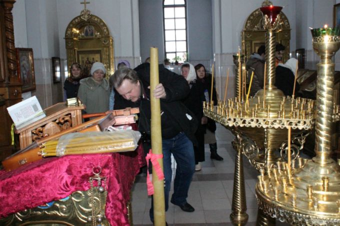 17 февраля в рамках фестиваля «Братская свеча» группа паломников из Столина, во главе с помощником благочинного по социальной работе Михаилом Скребейко, привезли в Ганцевичи свечу весом 8 килограмм.