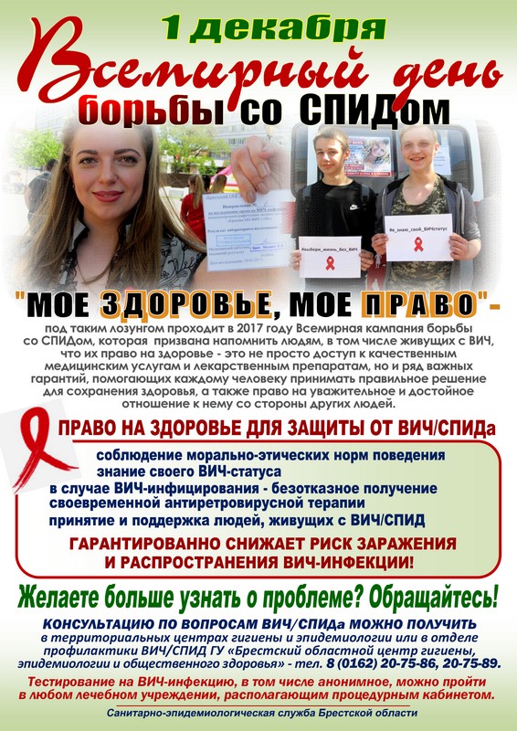 Хотите узнать больше? 1 декабря 2017 года – Всемирный день борьбы со СПИДом «Мое здоровье, мое право» Ежегодно, 1 декабря, в соответствии с решением Всемирной организации