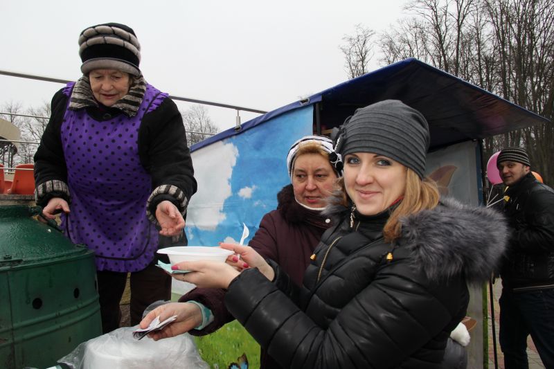 Здаецца, у парку не было ніводнага куточка, куды б не завітала Масленіца. Працавалі атракцыёны, электрамабілі, “Вясёлы аўтапоезд”, “Чароўная карэта”. Добры настрой людзі падмацоўвалі смачнымі стравамі. Большым попытам, безумоўна, карысталіся масленічныя бліны. Дзеці з цікавасцю назіралі, як умела гатаваліся галоўныя атрыбуты свята. Усім прыйшлася даспадобы і масленічная каша. Затрымліваліся госці ля гандлёвых кропак з сувенірнай прадукцыяй. Разнастайныя абярэгі, саламяныя вырабы для многіх стануць напамінам аб гэтай падзеі.