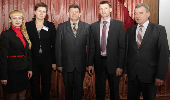 НА СНИМКЕ: (слева направо) главный специалист по работе со СМИ Юлия Руссина, специалист по маркетингу Кобринского ЗУЭС Галина Лукашук, директор Кобринского государственного профессионального лицея сферы обслуживания Виктор Ничипорук, заместитель председателя Кобринского райисполкома Валентин Трубчик и председатель городского объединения организаций профсоюзов Михаил Трубчик.