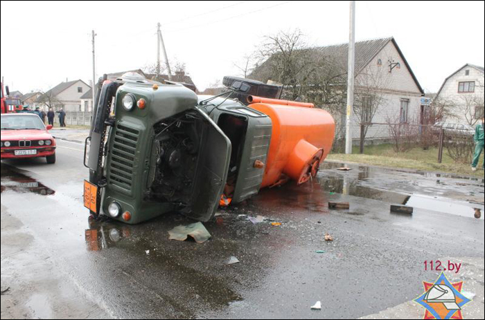 В Кобрине опрокинулся бензовоз, вылилось пять тонн дизтоплива