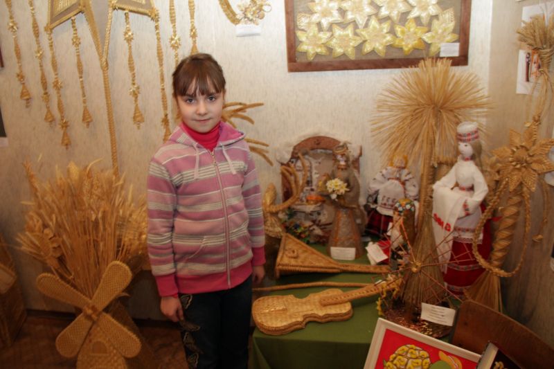 Шматлікія малюнкі, вырабы з другаснай сыравіны, прыроднага матэрыялу, паперы і тканіны ўражваюць наведвальнікаў багаццем фантазіі аўтараў. “Мы планавалі арганізаваць выставы выяўленчага мастацтва, але ўстановы адукацыі горада і раёна праявілі ініцыятыву, прадставіўшы работы і іншага накірунку”, – расказвае загадчык аддзела выяўленчага мастацтва і дэкаратыўна-прыкладной творчасці Кобрынскага РЦДТ Аксана Страчук. Работы, прысвечаныя ваеннаму ліхалеццю, уражваюць глыбінёй аўтарскіх пачуццяў. Падоўгу затрымлівае ўвагу кампазіцыя “Вайна і мір”. Гэта своеасаблівая 3D карцінка, якая дае магчымасць пранізаць час, трапіць з ваеннага ў мірнае жыццё. Адразу некалькі тэхнік спалучылі ў рабоце яе аўтары – кіраўнік гуртка “Майстар Дамавёнак” Кобрынскага РЦДТ Святлана Крачына і выхаванка гуртка Валерыя Кірыеўская. Прыцягвае ўвагу і ордэн Вялікай Айчыннай вайны, выкананы ў тэхніцы арыгамі. Не менш цікавыя работы ў выставе “Каб сонейка смяялася”. Асабліва шырока тут прадстаўлены саламяныя вырабы дзівінскай майстрыхі Юліі Піваваравай. У выставачнай зале экспазіцыі размясціліся адна насупраць другой. Проціпастаўленне з’яў – міру і вайны – з большай сілай адлюстроўвае увесь жах кровапраліцця. Зараз выставы працуюць у актыўным рэжыме. Як адзначыла Аксана Васільеўна, пакуль ёсць попыт, работа іх працягнецца. Людміла ДУБІНА. Фота аўтара.