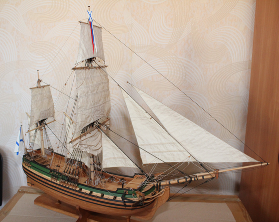 Не найти такого мальчишки, который хоть раз в жизни не грезил бы морем – не читал книги об отважных мореплавателях, не представлял, как под суровым норд-остом гнутся мачты и хлопают паруса на пути к далёким берегам… Именно такие ассоциации возникают, если долго смотреть на модель фрегата 18-го века, выполненную кобринчанином Андреем Крачко, который недавно завоевал сразу две медали за 1-е и 2-е место в классах «С-1» и С-8» на чемпионате и первенстве Республики Беларусь по судомодельному спорту «Стенд-2015». Фрегат – а точнее, архангельский гукор – занял высшую ступень пьедестала, а сам Андрей выполнил норматив мастера спорта. - Малые фрегаты такого типа пришли в Россию из Голландии, их активно насаждал на Балтике Пётр І, – рассказывает Андрей Крачко. – Гукоры обладали отличными мореходными качествами, были быстроходными, легко управлялись – и использовались как для патрулирования, так и для торговли и рыболовства. С фрегатом и его автором мы познакомились в стенах Кобринско-Малоритской МРОС ДОСАФФ, которая оказала судомоделисту помощь в организации поездки на чемпионат Беларуси. Конкретизируем: все части корабля были выполнены автором целиком и полностью самостоятельно, от руля до самых тонких тросов диаметром всего 0,4 миллиметра – и в полном соответствии с чертежами. Из итальянского хлопка Андрей Крачко сам шил паруса – кстати, одно только их изготовление заняло 2 месяца, в собственноручно изготовленных формах из специального сплава отливал якоря. При внимательном рассмотрении детализация просто поражает воображение – фрегат выглядит настолько реалистично, что поневоле начинаешь искать на палубе экипаж. По словам автора, выполнение данной модели от начала до конца заняло порядка 14 месяцев. Что же касается судомоделизма вообще, то, как отмечает наш собеседник, строительство моделей было его давней детской мечтой – а мечты, как известно, должны сбываться. - Честно признаться – технологии и уровень мастеров того времени просто поражают воображение, – делится своими мыслями Андрей Крачко. – Сложно себе даже представить, как без современного инструмента, без привычных для нас точных измерительных приборов могли делаться такие точные и совершенные вещи. А ведь делались – и строения деревянные веками стояли, и корабли по морям ходили… Вот оно – настоящее, подлинное мастерство. К слову, победа на чемпионате Беларуси для Андрея и его творения – не последний этап. На момент нашей встречи он как раз готовился к отъезду на соревнования в Вильнюс, а осенью – в Румынию, где будет выступать уже на чемпионате мира. Будем от всей души болеть за нашего земляка – и следить за его дальнейшими достижениями. Дмитрий БЕЛОВ. Фото автора.