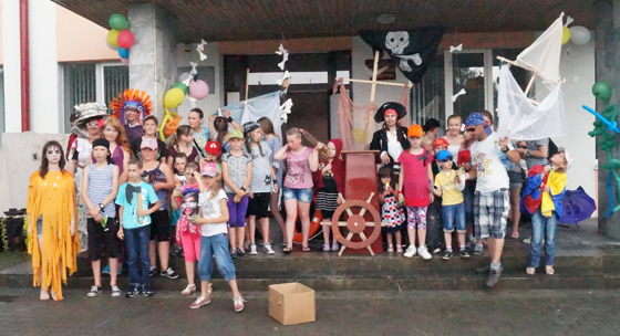 В один из тёплых июньских вечеров жители деревни Хидры наблюдали достаточно необычное явление: школьники и даже взрослые бегали по деревне в костюмах… пиратов. Уже год в Хидринском Доме культуры работает молодой специалист Снежана Марковская. Изначально девушка занимала должность художественного руководителя, а два месяца назад стала директором учреждения. С этого момента молодой руководитель начала решать одну из главных проблем большинства сельских клубов – привлечение детей и молодёжи к культурной жизни деревни. Первым таким мероприятием, которое было в новинку, стала квест-игра, посвящённая приключениям Джека Воробья. Вот именно её проведение и наблюдали жители деревни. - Подготовка к игре заняла две недели, – рассказала нам Снежана Анатольевна. – В школе разносились приглашения, готовились маршрутные листы и декорации. На игру дети пришли в пиратских костюмах, в качестве персонажей команды Джека Воробья выступили работники клуба. Маршруты разработали таким образом, чтобы команды нигде не пересекались, задания были зашифрованы. По словам Снежаны Анатольевны, во время игры ребята бегали по всей деревне, даже в лесу побывали. На каждой станции участникам предлагались различные задания, причём не самые простые. Победившая команда забрала свой приз-клад на площадке у клуба, откуда и начинался квест. Приятно было, что роль пиратов примерили на себя даже некоторые родители, однако организаторы уверены, что в последующих мероприятиях взрослых будет значительно больше. Снежана Марковская рассказала, что следующая игра планируется по книгам о Гарри Поттере. Директор клуба полна идей. К примеру, действует танцевальный кружок, где ребята изучают современные танцы, ко Дню Независимости Республики Беларусь готовится большой концерт. Снежана Анатольевна уверена, что у неё всё получится, так как работает в команде. Людмила ПАШКОВИЧ. НА СНИМКЕ: на одной из станций; Джек Воробей и его команда.